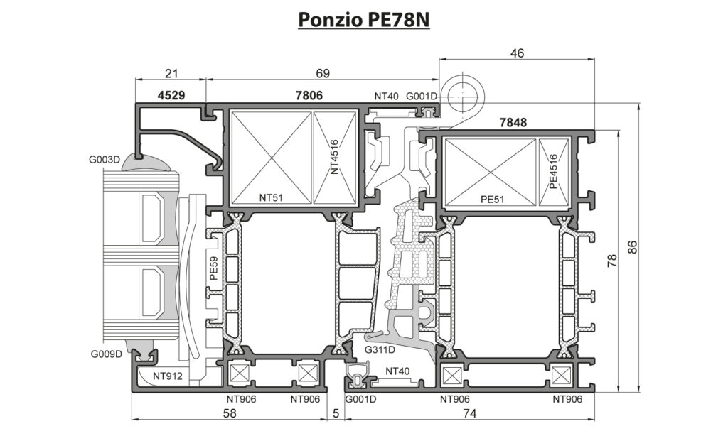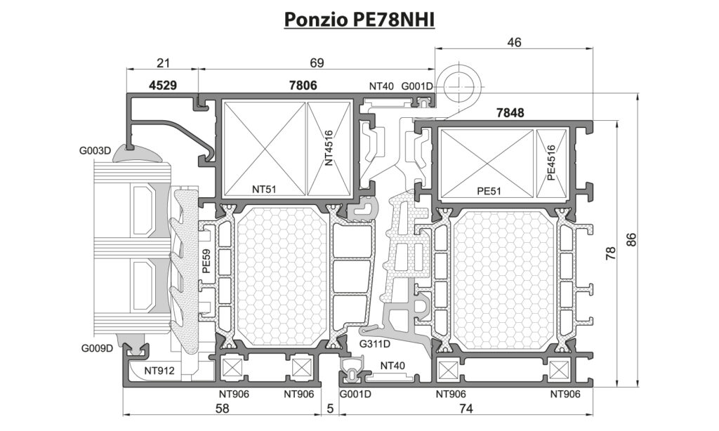 V provedení Procural PE 78N HI je do profilu rámu a křídla vkládána tepelně izolační vložka a tím je dosaženo ještě lepších termoizolačních hodnot.